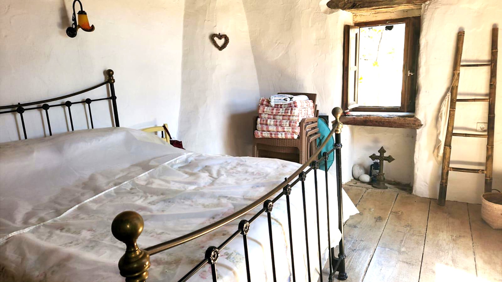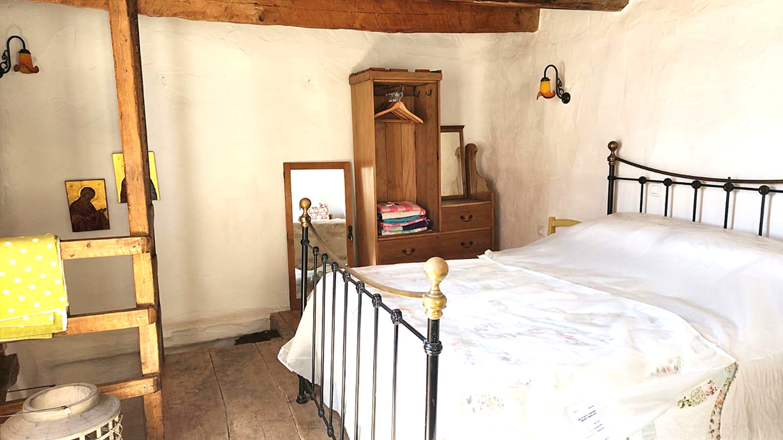 Double sized bedroom with door to private terrace and views over the village and mountains beyond.