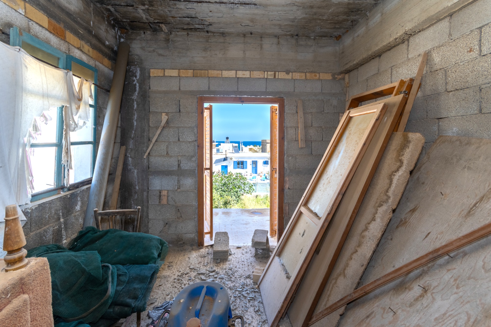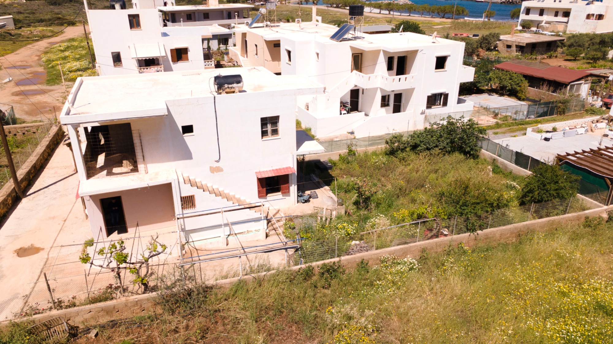 A detached building within a 5 minute walk of the sea located in the popular village of Milatos, East Crete. The ground floor of the property comprises a 2 bedroom apartment with living room and bathroom. The independent 1st floor accessed via external steps comprises an unfinished shell which can be converted into a further apartment.